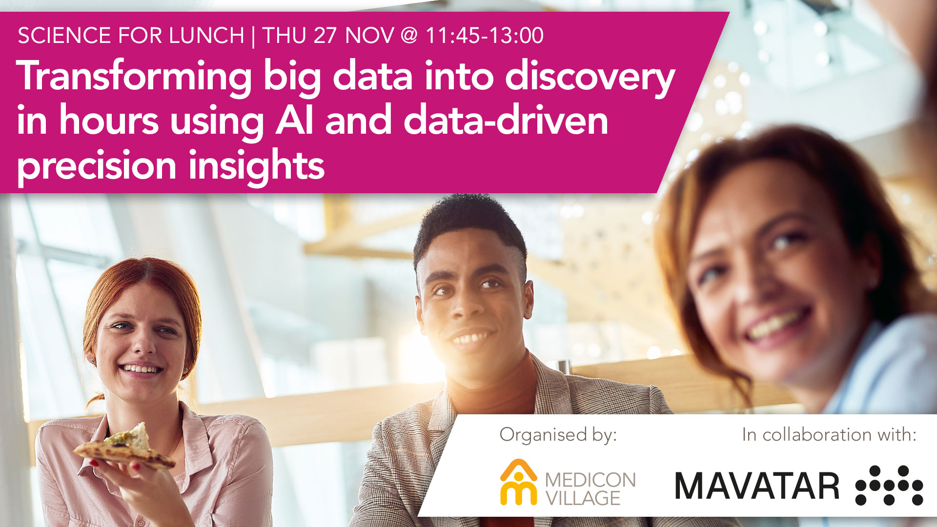 What if you could move from raw transcriptomic data to actionable biomedical insights – in hours rather than months? That’s the promise of Mavatar Discovery, a next-generation research platform now available to researchers, innovators and clinicians. Join us for an engaging lunch session where experts from Mavatar will share how cutting-edge AI and data-driven methods are transforming precision medicine – from early research to real-world impact.